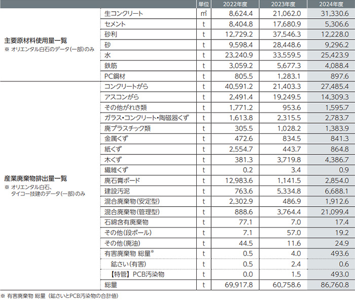 当社グループは、Scope3 に該当するCO₂排出量の総量算出、そして実計測によるデータ精度の向上、そして削減に向けた目標設定に取組んでおります。現在は工場や限られた工事のデータのみの収集、算定になりますが、その結果を下記表に示します。