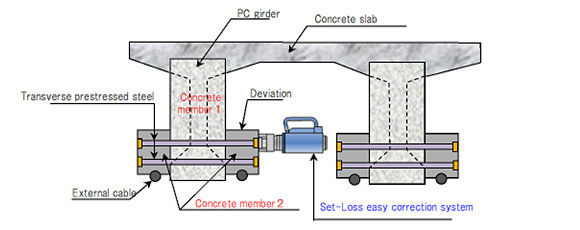 The Set-Loss easy correction system can reduce set loss by using an HG grip with threads cut into the wedge anchorage and imparting prestress to a prestressed concrete (PC) structure in a narrow space. In a conventional set-amount correction system, after prestressing at a certain load, tension is released, the jack is removed, and the designated ram chair and tension jack need to be installed. However, in the Set-Loss easy correction system, the jack does not need to be removed during stress correction because the designated nose includes the ram chair function.