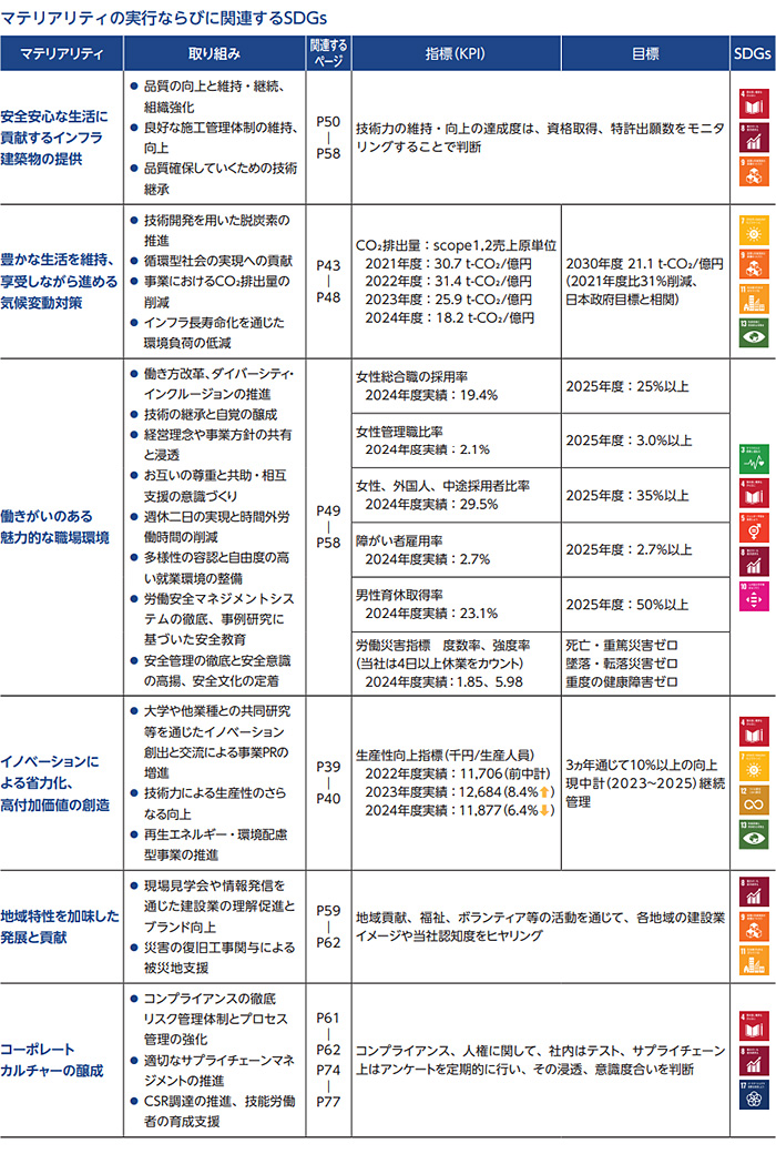 経営理念の「人と技術を活かし、常に社会から必要とされる集団を目指す。」に基づき、私たちは社会資本の整備・維持や地域社会及び地球環境の課題解決に向けたあらゆる事業活動を通じ、持続可能な社会への貢献と企業価値の向上を追求していきます