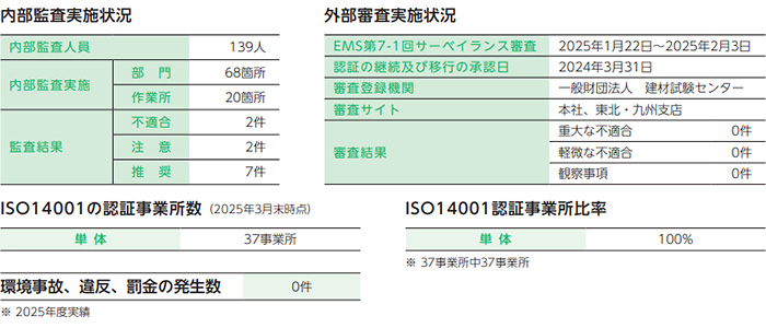 2025年3月期に行われた外部審査の結果は下記の通りです。不適合事項に関する改善または是正は検出されませんでした。