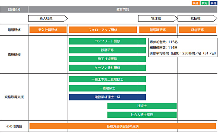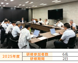 社内組織の技術レベル向上を目指し、保有するプレストレストコンクリート、ニューマチックケーソン工法等の技術向上における風土の醸成を目的とし、設計の専門家とともに設計照査、設計計算書等が理解できる能力を身に付ける、業務に対する実効性が高く、密度の濃い研修内容となっております。