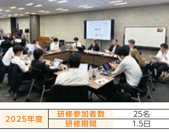 過去の建設工事発注量減少に伴う新卒採用見送り時期があった影響から研修参加対象者が少なくなり、ようやく昨年度から再開された当研修ですが、参加者も昨年の3名から9名に増え、今後さらに活躍の期待がかかる重要世代に対する有用な教育訓練機会として実施されました。参加人数が増えたことで、グループ討議メニューや社内外の講師とのディスカッションの密度も濃くなり、管理職としての視座と心構えを醸成する実のある研修となりました。今後はそれぞれの就業部署で管理職目線での業務遂行と適切な指導がなされていくものと期待されます。