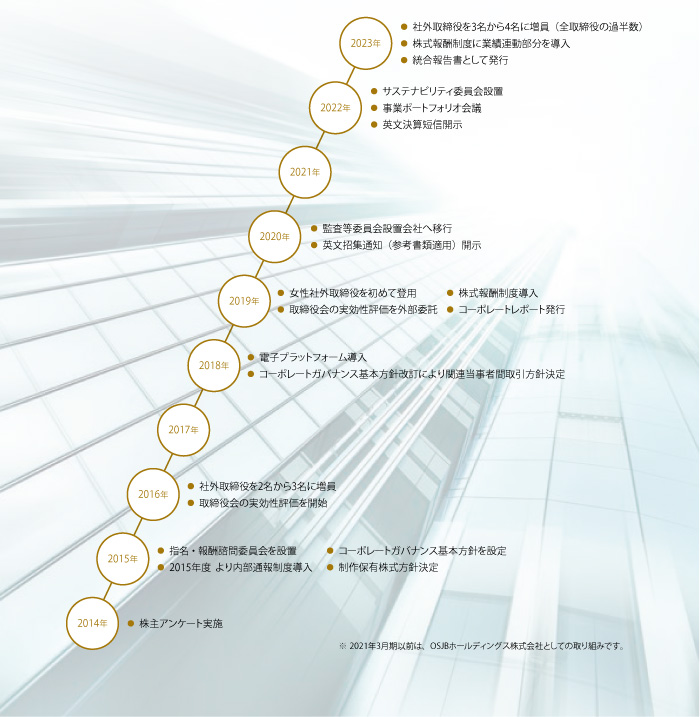 また、当社は、当社グループが持続的に成長して堅固な経営基盤を保持し企業価値を高めていくために、コーポレート・ガバナンスの重要な基盤となる内部統制システムの実践とその有効性の継続的な監視を行ってまいります。